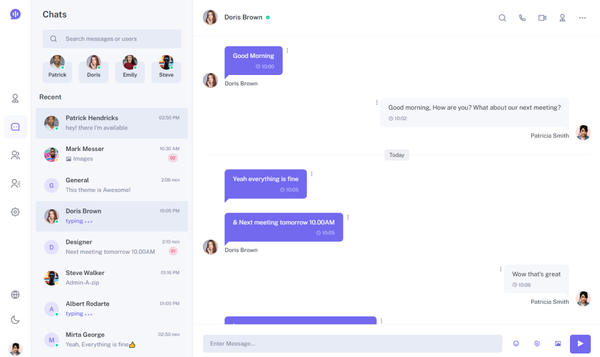 Chatvia – React Chat App Template is a premium, fully responsive chat application template developed in React JS, Bootstrap 5.x, Redux (Saga & Hooks), and SCSS. Chatvia is designed for developers looking to create modern chat interfaces. The Chatvia template features functional and class-based components, allowing for rapid changes between modes. It's a perfect choice for SaaS chat platforms, internal messaging applications, or as a prototype app. Every element is managed via JSON data objects—nothing is stored in a backend, so setup is VERY fast and easy. The authentication methods you can choose from include a Firebase implementation or a fake backend. Also included are authentication pages, contact lists, and a clean production version UI. The CrazyTemplates YouTube channel has multiple videos on using the Chatvia template.