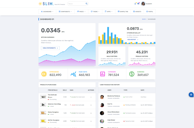 Slim - a free and open source React dashboard template