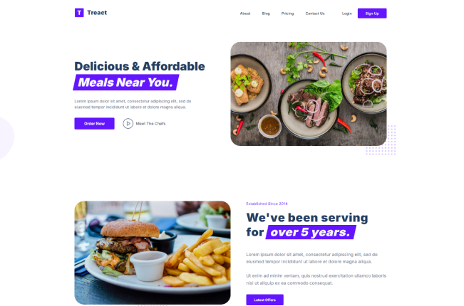 Treact - Modern React Landing Page Components Kit with TailwindCSS is a versatile and fully responsive set of UI components designed to streamline the development of landing pages. Built using React and TailwindCSS, it offers developers a flexible and customizable toolkit for building modern and sleek landing pages effortlessly.